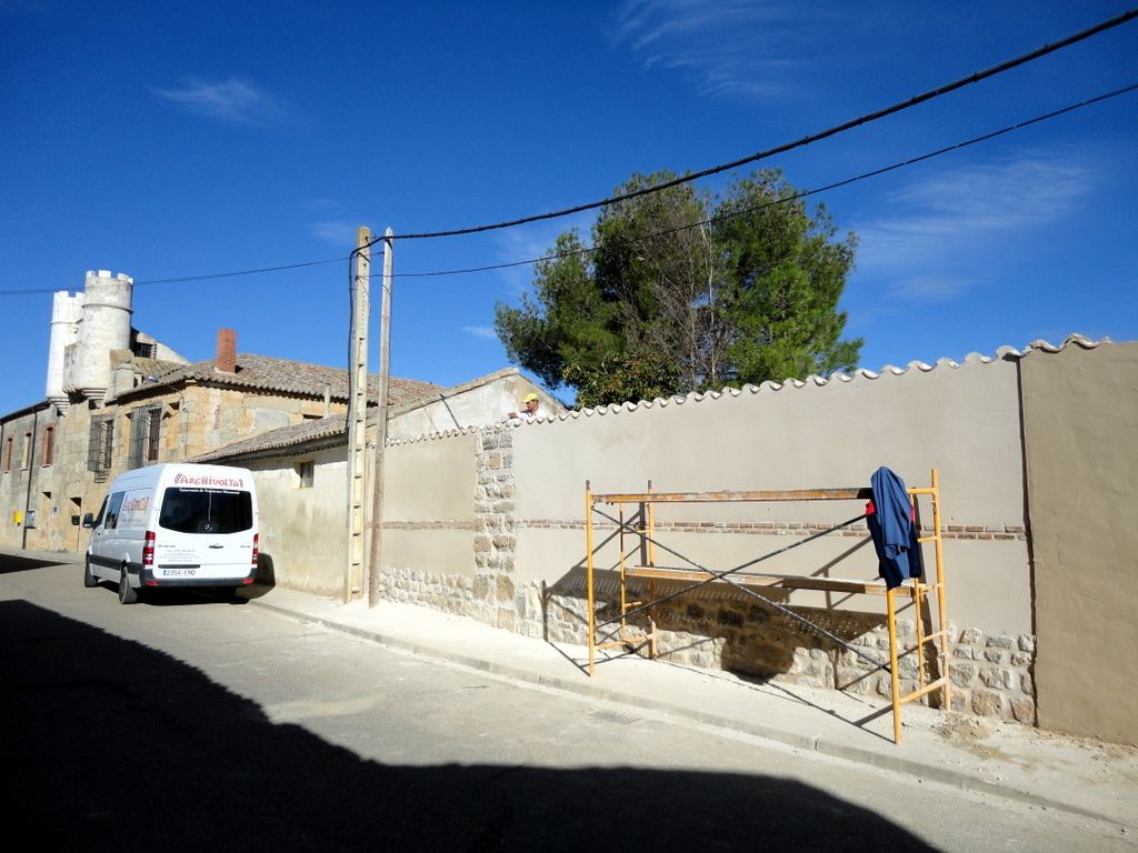 Consolidación, limpieza y restauración de los cerramientos de la finca. Acabado con mortero y cal aérea natural en entrepaños, saneado de las líneas de verdugadas y limpieza no agresiva tanto de los sillares como de la mampostería conservando el volumen original.