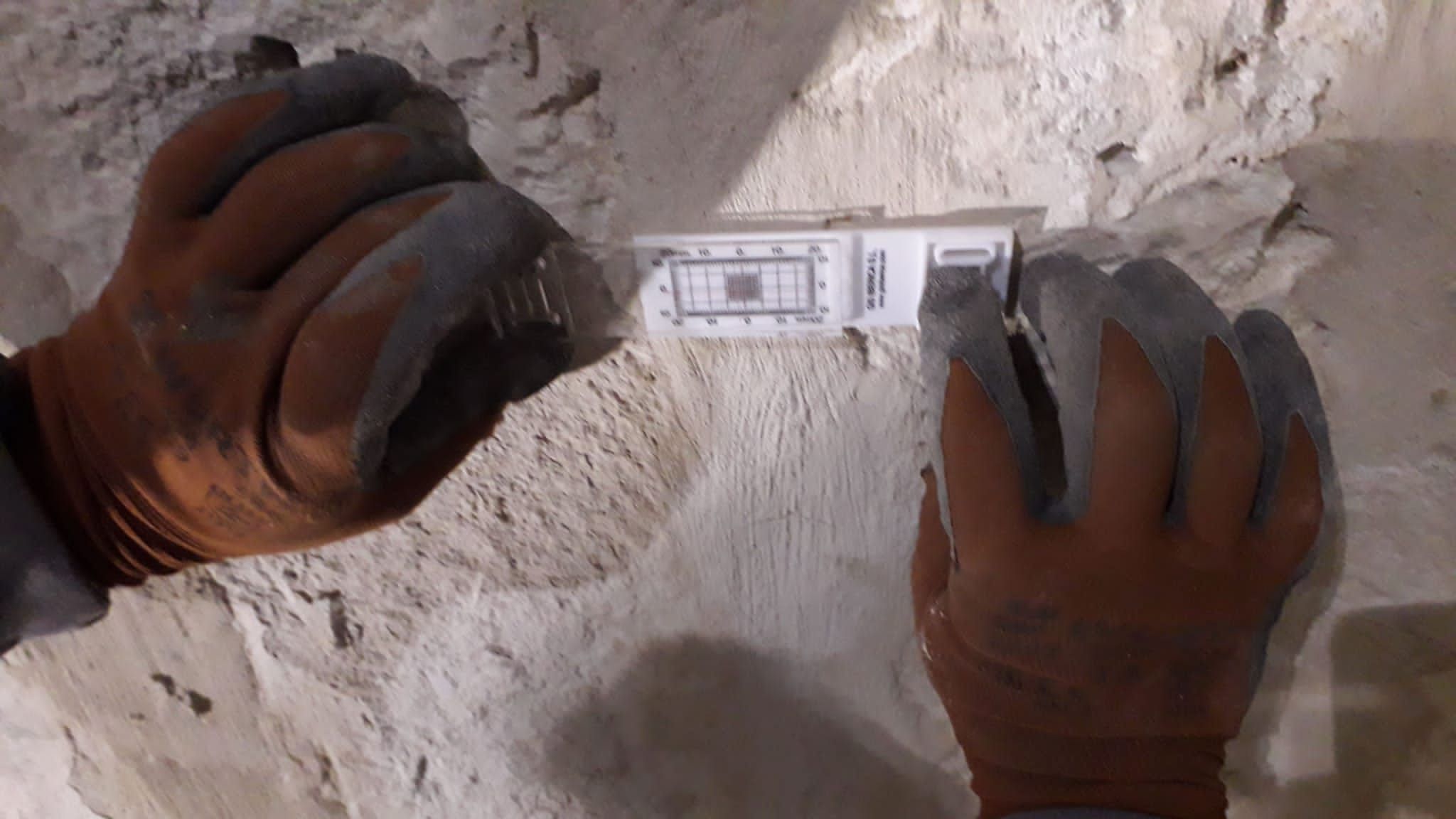 Reparación del pilar interior en la Colegiata de San Miguel Arcángel de Ampudia (Palencia). Desde enero de 2019 se realizó una primera aproximación y trabajos previos para describir el estado del pilar situado en la nave central que presentaba deformaciones y grietas en el encamisado metálico, para obtener información acerca de la constitución del pilar y su proceso de deterioro a fin de evaluar las necesidades de intervención.