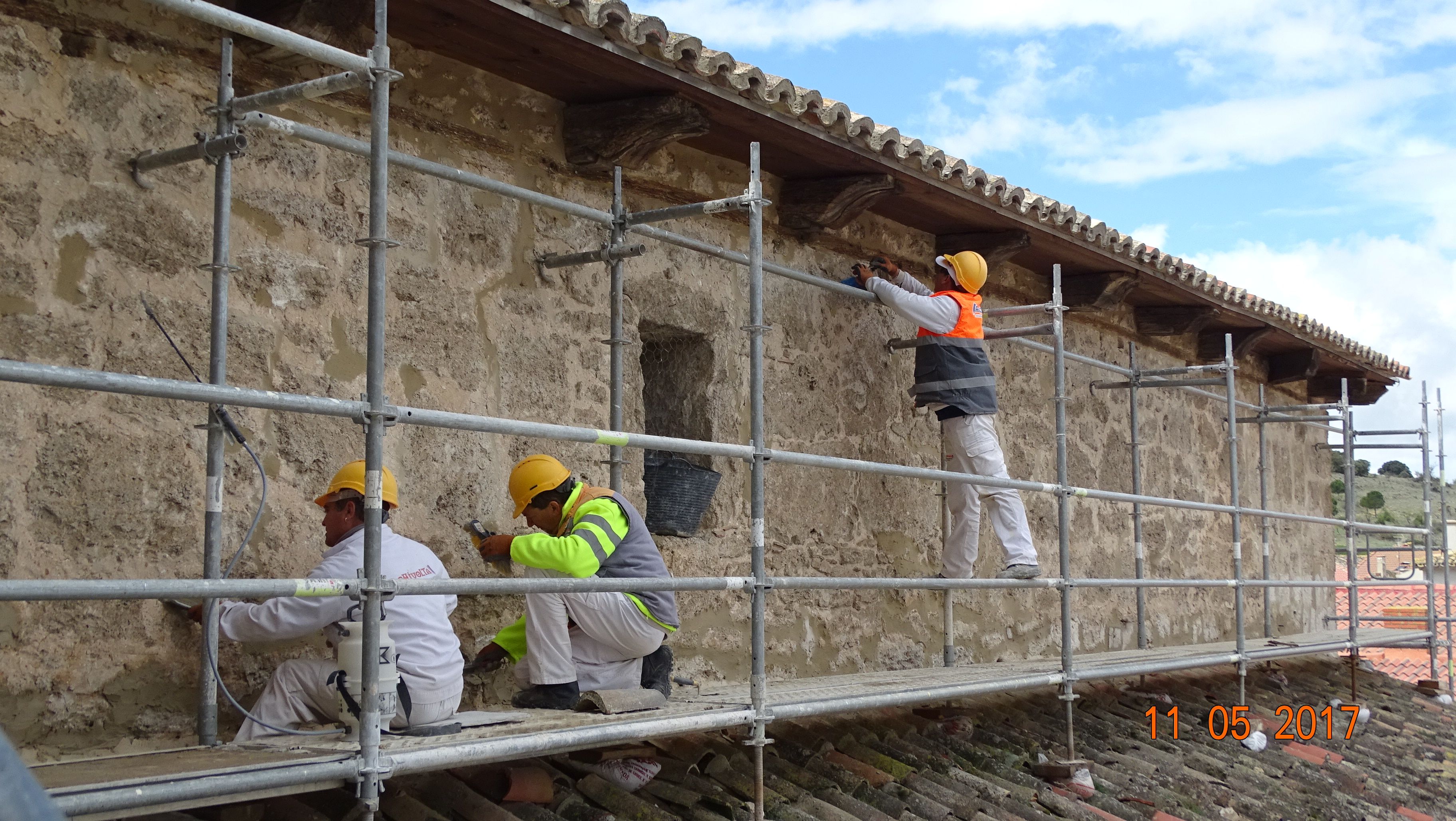 Trabajos de restauración de fachadas y cubiertas de la Iglesia de Ntra. Sra. de la Paz en el año 2016-2017, así como trabajos en el suelo de la iglesia en el 2017.
