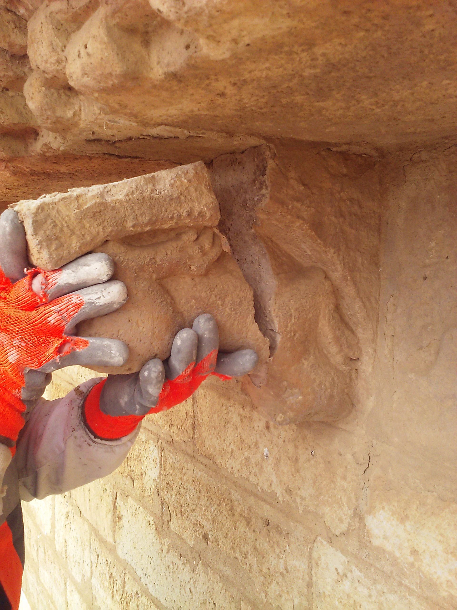 Trabajos de restauración de diversos elementos interiores y exteriores en la Iglesia de San Martín de Frómista (Plencia), monumento BIC, en 2018.