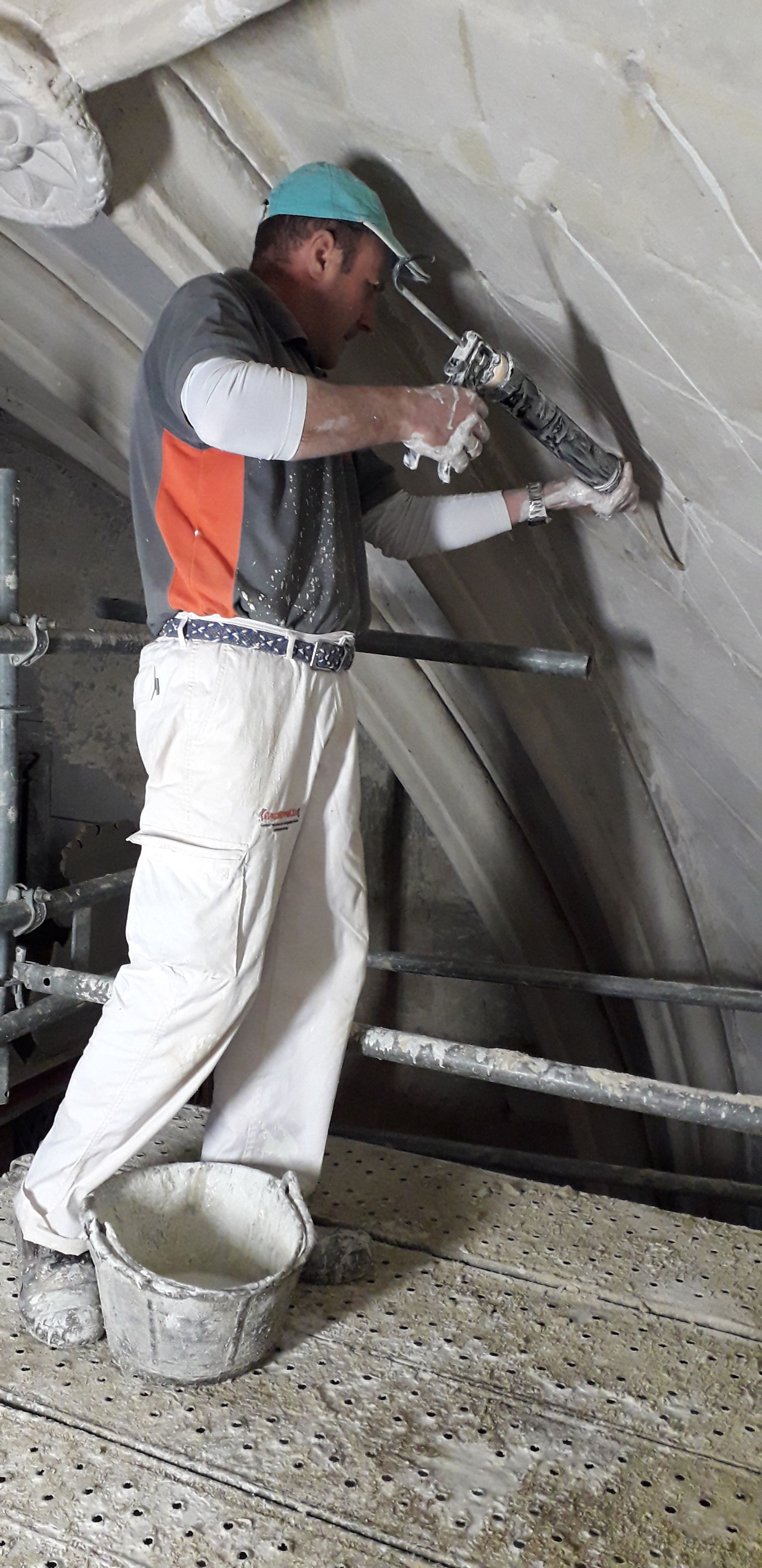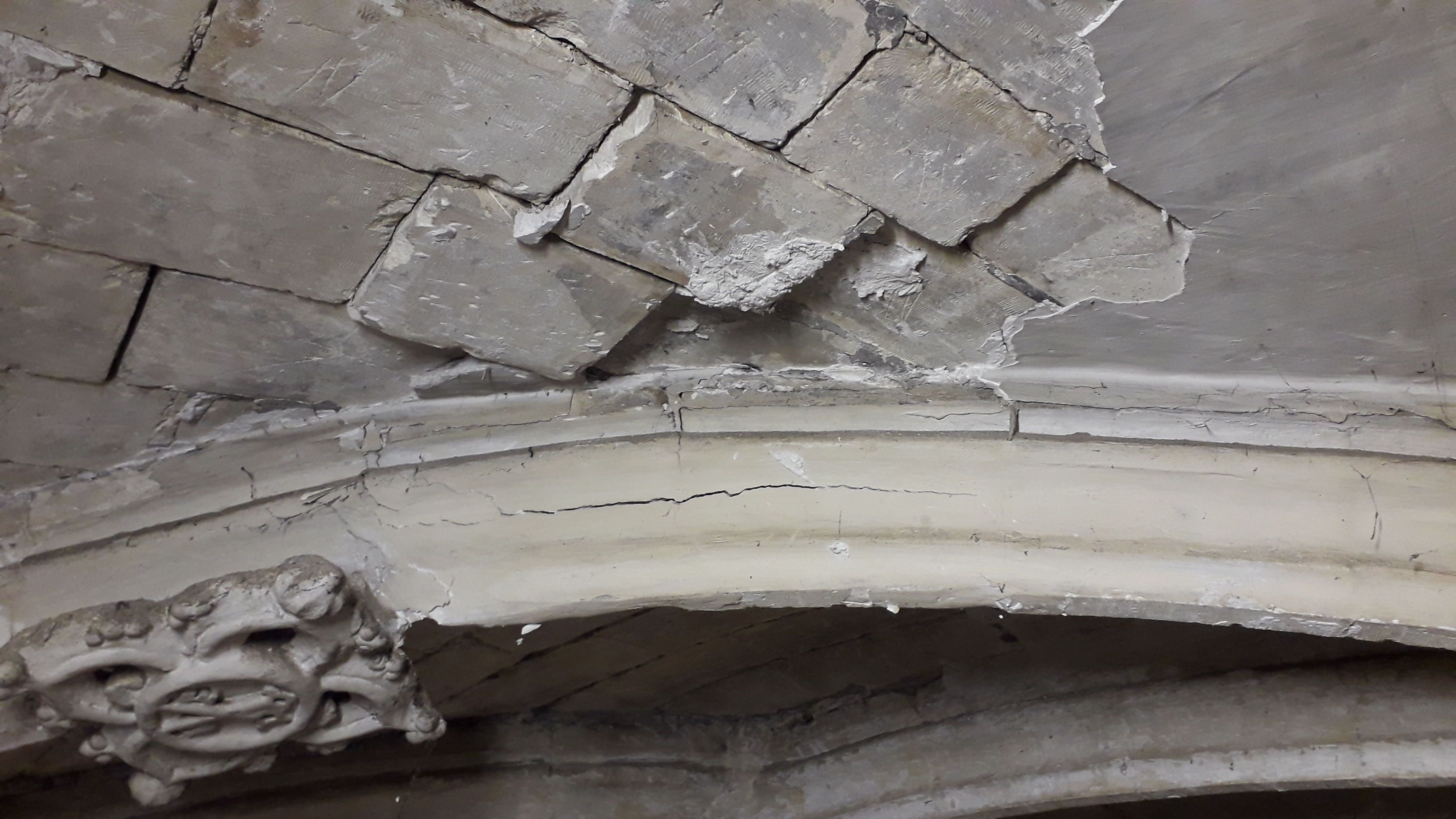 Actuaciones en plenmentos desprendidos en la iglesia de San Pedro de Astudillo, Palencia en el año 2019.