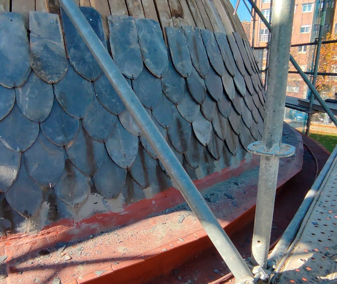 Reparación de la cubierta de pizarra de la cúpula de la Iglesia.