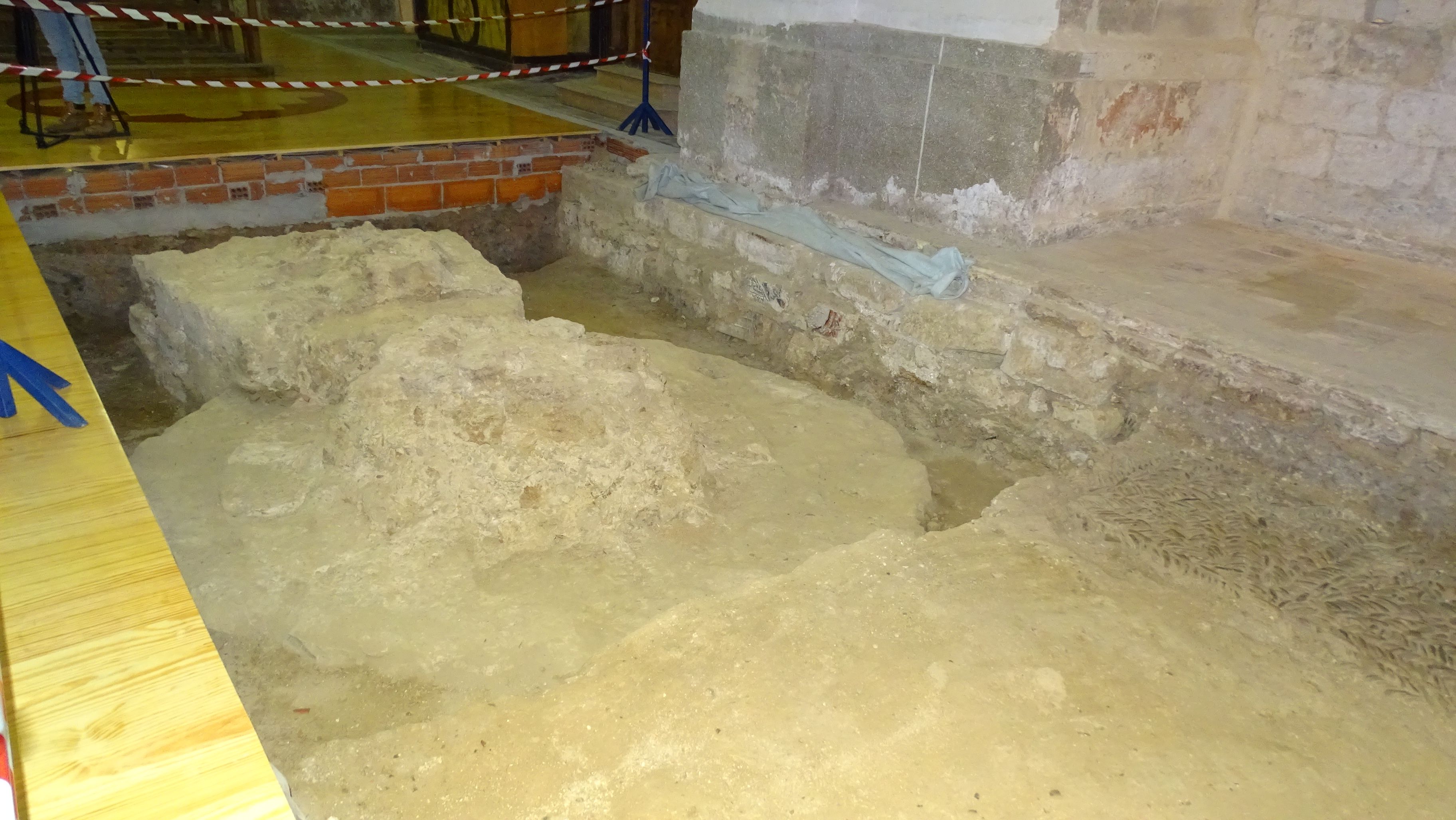 A partir del mes de octubre de 1999, en que aparecieron diversos restos románicos, se ha podido avanzar de modo considerable en el conocimiento de la realidad material de la desaparecida iglesia románica. Sabemos que era un edificio de planta basilical, de tres naves, cada una de ellas con cuatro tramos, y un transepto no destacado en planta cuyo tramo de crucero muy probablemente fue coronado por un cimborrio.