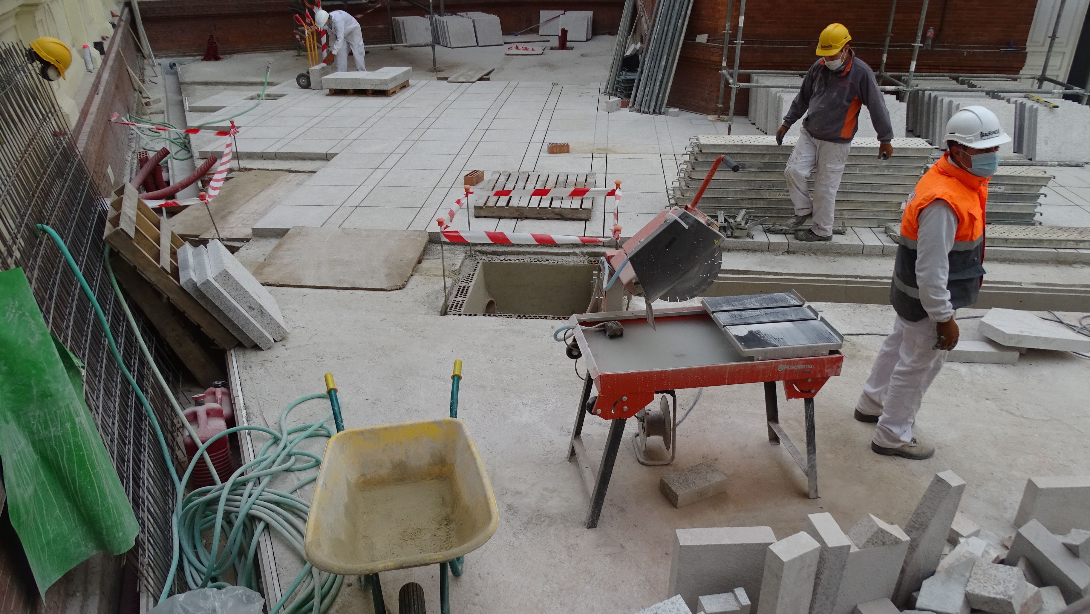 - Ejecución de un solado de baldosas de granito de 8 cm. de espesor de diversas dimensiones